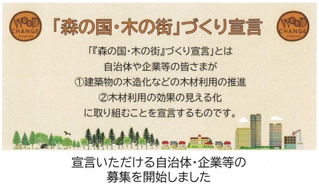 『森の国・木の街』づくり宣言の詳しい内容は、こちら(林野庁のHP)をご覧ください。